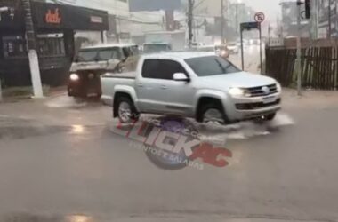 Diversos pontos de Rio Branco ficaram alagados após uma forte chuva no fim da manhã desta quarta-feira, 9, causando transtornos em várias vias do centro