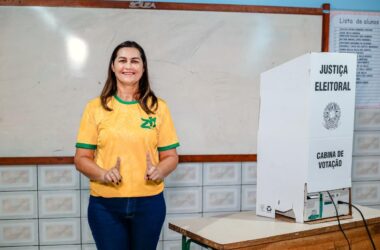 Em Cruzeiro do Sul, a candidata a vice-prefeita, Delcimar Leite, que integra a chapa de Zequinha Lima, votou na manhã deste domingo, 6, na seção