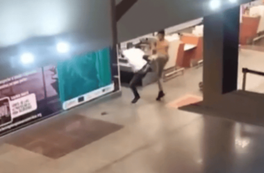 Imagens registradas por um popular no Aeroporto Internacional de Rio Branco mostram dois homens trocando socos entre os guichês de atendimento e o portão de