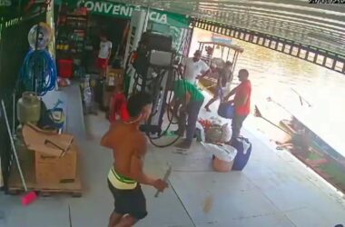 Um vídeo mostra o momento em que um homem identificado por populares como Valdernilson Rosas da Silva, de 25 anos, suspeito de tentar matar a