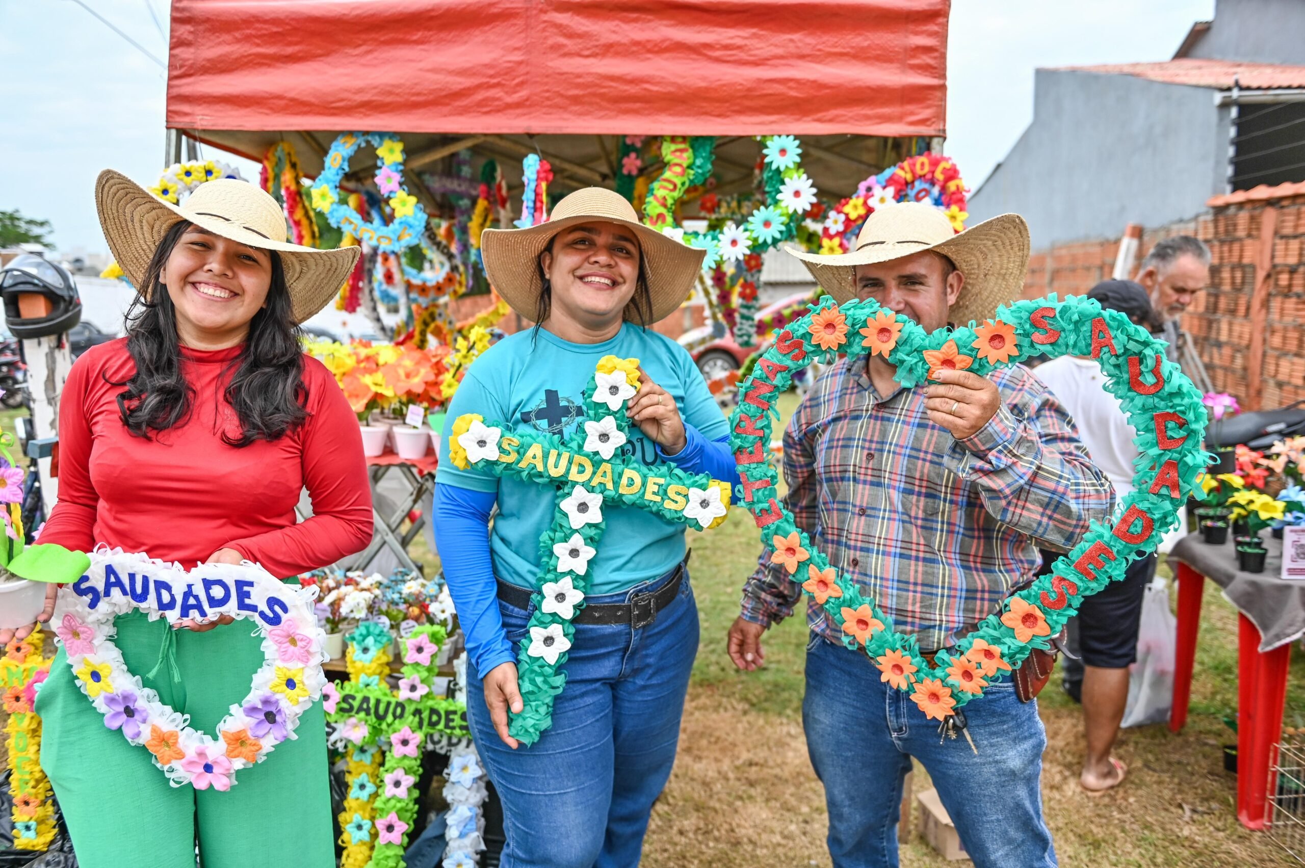 No Dia de Finados, o casal Evany e Jucy Machado, autônomos de Porto Acre (AC), saíram de casa ainda na madrugada deste sábado, 02, para garantir seu espaço e preparar as tendas com coroas, flores e arranjos no Cemitério Jardim da Saudade, em Rio Branco (AC).