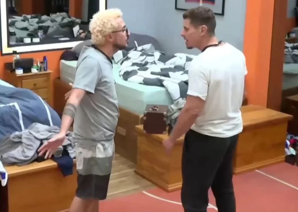 “E você acha que eu tenho medo de você?”, rebateu o ator, entrando no quarto na sequência. “Vem então. Você acha que vai gritar comigo, e eu vou ficar quietinho”, resmungou o chef, que foi atrás do rival assim que terminou de escovar os dentes.