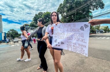 Familiares do jovem Mikael Diniz Moura, 20 anos, assassinado com uma facada no peito na Avenida Amadeo Barbosa, no Segundo Distrito de Rio Branco, fizeram