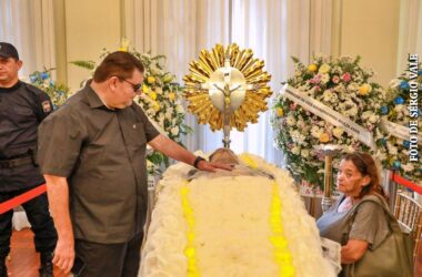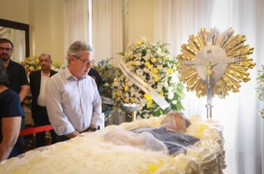 Durante o velório de Flaviano Melo, que acontece neste sábado (23) no Palácio Rio Branco, a família prestou homenagens ao ex-governador do Acre. Filhos e