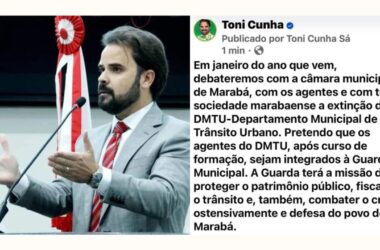 O prefeito eleito de Marabá (PA), Toni Cunha (PL), anunciou em suas redes sociais a intenção de extinguir o Departamento Municipal de Trânsito Urbano (DMTU)
