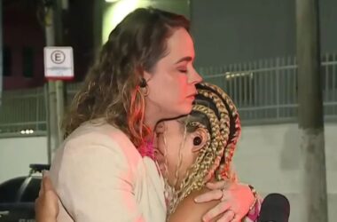 Emocionada, repórter do SBT abraça ao vivo jovem que teve o pai assassinado
