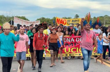 Um acampamento reúne mais de mil indígenas de diferentes povos de Roraima há 18 dias em manifestação contínua contra o Marco Temporal e a PEC