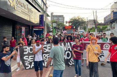 Militantes de espectros políticos ligados à esquerda realizaram uma caminhada pelas ruas do centro de Rio Branco, no fim da tarde desta sexta-feira (15), numa