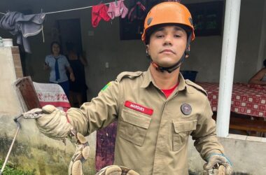 O Corpo de Bombeiros de Cruzeiro do Sul realizou nesta terça-feira, 12, o resgate de uma cobra no topo de uma árvore em uma propriedade