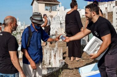 Integrantes da igreja Batista Vida de Cruzeiro do Sul levam palavras de conforto, ministram sobre Deus e distribuem água mineral gratuitamente aos visitantes dos cemitérios