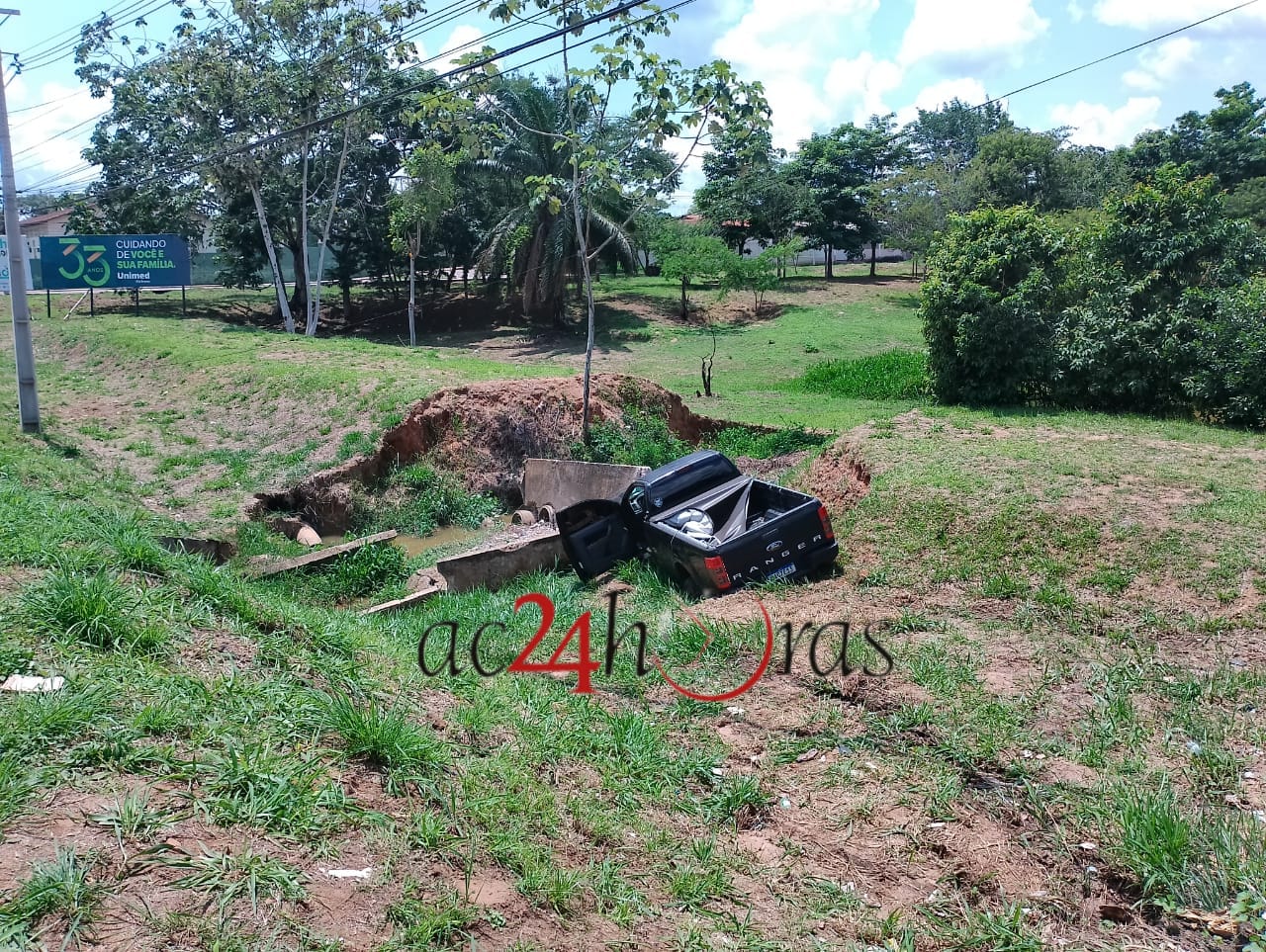 Um grave acidente foi registrado na madrugada deste domingo, 1º, na BR-364, em Rio Branco, quando o motorista de uma caminhonete perdeu o controle do veículo, saiu da pista e colidiu contra uma galeria de água pluvial. O condutor, que estaria supostamente embriagado, fugiu do local a pé, segundo informações preliminares.