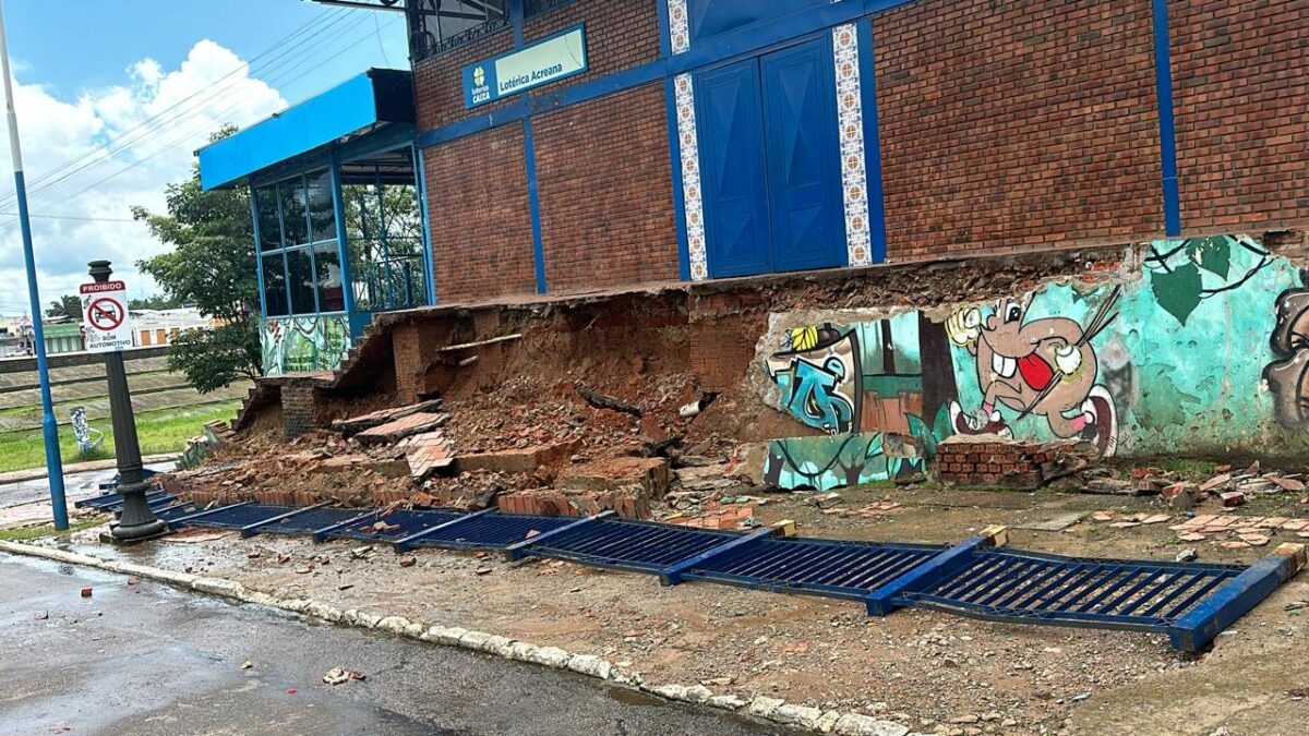 Um desmoronamento de terra atingiu na manhã deste domingo, 15, o Mercado dos Colonos, localizado no Centro de Rio Branco, comprometendo a área e preocupando comerciantes e frequentadores.