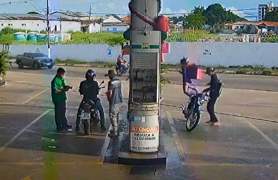 No vídeo, é possível ver o criminoso abordando inicialmente um entregador e tomando a chave de sua moto. Outro comparsa age simultaneamente, roubando o dinheiro do frentista e os pertences de um cliente que abastecia o veículo. Quando a motocicleta do primeiro entregador não funciona, o criminoso muda o alvo e rouba outro cliente, fugindo em seguida com mais uma moto. Após o crime, a dupla deixou o local em direção ao Centro de Rio Branco.