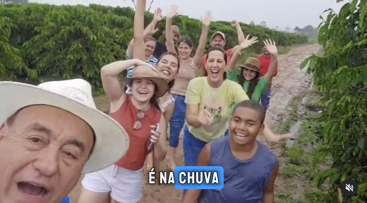 No vídeo, Bocalom aparece em meio a um cafezal na região, acompanhado por familiares e debaixo de chuva. De forma descontraída, ele comenta: “Isso é lua de mel no cafezal”.