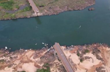 Um caminhão-tanque com ácido sulfúrico está entre os veículos que caíram no Rio Tocantins após um trecho da Ponte Juscelino Kubitschek de Oliveira desabar, neste