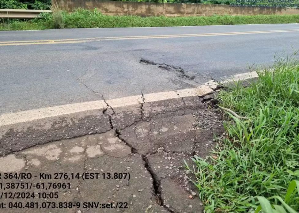 Uma fissura na cabeceira de uma ponte no trecho entre os municípios de Cacoal (RO)e Presidente Médici (RO), na BR-364, tem gerado preocupação entre os motoristas que trafegam pelo local. O Departamento Nacional de Infraestrutura de Transportes (Dnit) informou que a rachadura surgiu após um leve desnível superficial.