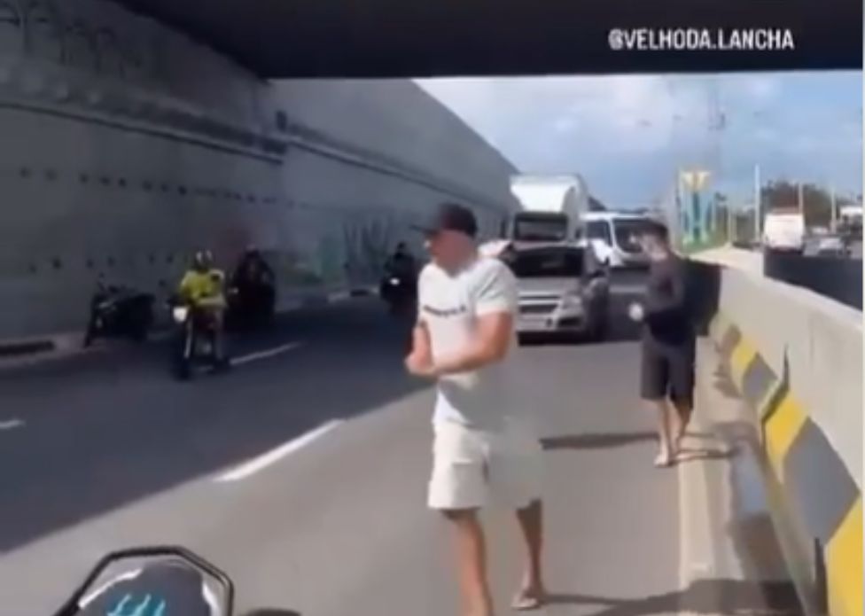 Um vídeo que circula nas redes sociais mostra alguns carros e motocicletas parados debaixo do viaduto enquanto os motoristas correm para pegar dinheiro que estaria voando na pista.
