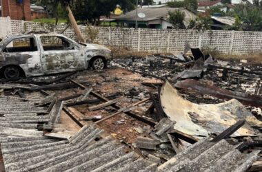 Uma casa que funcionava como tapeçaria e um carro que estava no local foram consumidos por um incêndio na madrugada deste domingo, 26, em Rodrigues