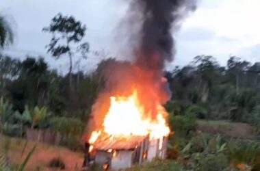 Um incêndio registrado na tarde desse sábado (25) destruiu uma residência de madeira na comunidade Esperança, parte alta da cidade de Brasileia, no interior do