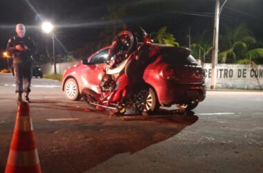 Um acidente registrado na noite desse sábado, 25, em Cruzeiro do Sul, deixou uma motocicleta “colada” em um carro. O caso aconteceu no cruzamento da