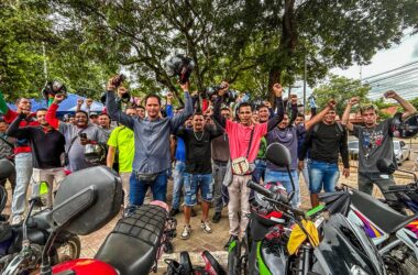 O senador Sérgio Petecão dialogou com motoboys que trabalham com transporte de passageiros por aplicativo, na manhã desta quinta-feira (23) e sugeriu uma manifestação com
