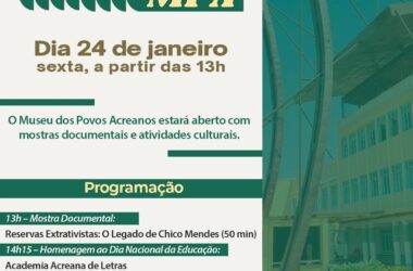 O Museu dos Povos Acreanos (MPA) abrirá suas portas para a 1ª Mostra Cultural nesta sexta-feira, 24, a partir das 13h. O evento é organizado
