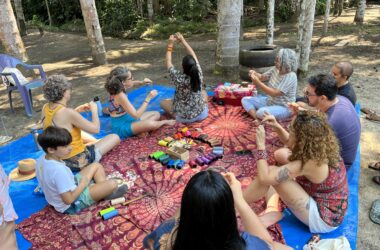 Com linhas, cipó, sementes, conchas e outros itens, um grupo de pessoas se reuniu neste final de semana em um sítio na Vila São Pedro,