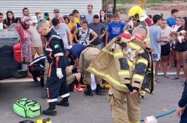 Neste domingo, 5, Kimberly Vitória, de 19 anos, teve que ser retirada pelos Bombeiros de debaixo de uma caminhonete depois de colidir com a motocicleta