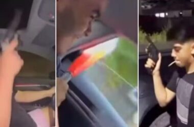 Câmeras de segurança registraram o momento em que três criminosos fortemente armados assaltaram uma família, no dia 17 de novembro de 2024, na rua Jerusalém …
