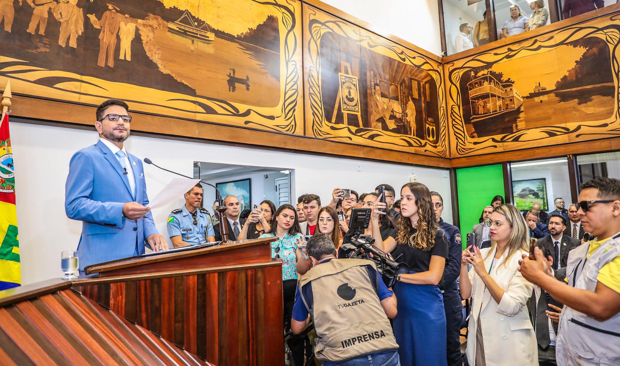 O governador Gladson Cameli abriu oficialmente os trabalhos legislativos nesta terça-feira, 4, com a tradicional leitura da mensagem governamental prestando contas dos 6 anos de mandato que já se passaram e uma expectativa de futuro enaltecendo o trabalho dos 24 deputados estaduais, destacando ser democrático e defensor da liberdade e das críticas construtivas. A leitura foi testemunhada presencialmente por deputados, chefes de poderes e servidores públicos.