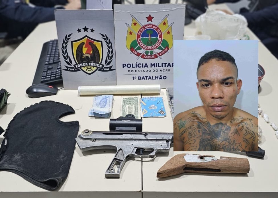 Mardone de Aguiar Silva, de 26 anos, foi preso na madrugada desta terça-feira (25) pelos crimes de tráfico de drogas e porte ilegal de arma de fogo. A prisão ocorreu no trapiche do Beco Angelina, no bairro Nova Esperança, em Rio Branco.
