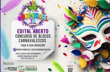 A prefeitura de Tarauacá abriu as inscrições para o desfile dos blocos de carnaval, que será realizado na Avenida Antônio Frota, no centro da cidade,