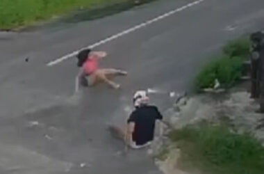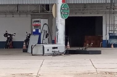 Um motorista, que ainda não foi identificado, deu marcha ré em um posto de combustível em Cruzeiro do Sul, derrubou uma bomba de gasolina, avariou