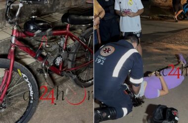 Uma colisão entre uma motocicleta e uma bicicleta motorizada deixou a motociclista Ketlen de Araújo Ferreira, de 27 anos, ferida na noite dessa terça-feira (25),