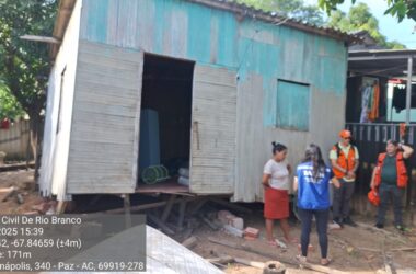 Uma residência localizada na Travessa Anápolis, no bairro da Paz, na capital acreana, sofreu desmoronamento parcial na tarde desta terça-feira (25). A Defesa Civil de