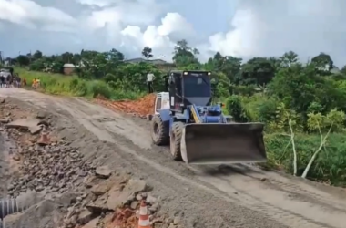 O trabalho feito pelo Departamento Nacional de Infraestrutura de Transportes (Dnit) para liberar o tráfego na BR-364 para veículos no final da tarde desta segunda-feira,