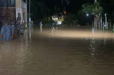 O Igarapé Batista transbordou na noite deste sábado (22) após as fortes chuvas que atingiram o Rio Branco, afetando diversas famílias no bairro da Paz.
