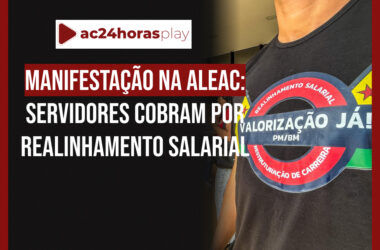 Policiais militares e bombeiros do Acre realizaram uma manifestação em frente à Assembleia Legislativa do Estado (Aleac) nesta quarta-feira, 12, para cobrar isonomia na remuneração