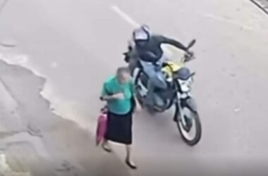 Imagens de câmera de monitoramento mostram uma idosa de 89 anos sendo arrastada e derrubada violentamente durante assalto na manhã…