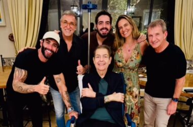Discreto nas redes sociais, Faustão apareceu em um raro clique ao lado da família e amigos. Um dos detalhes que chama a atenção na foto