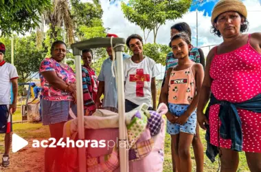 Três famílias de refugiados venezuelanos e colombianos estão vivendo em condições precárias na Praça do Juventus, em Rio Branco (AC). O repórter David Medeiros, do