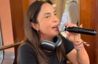 Ivete Sangalo não resiste a um microfone nem nas férias. A cantora, que está em Machu Picchu, no Peru, se divertiu ao ver uma banda