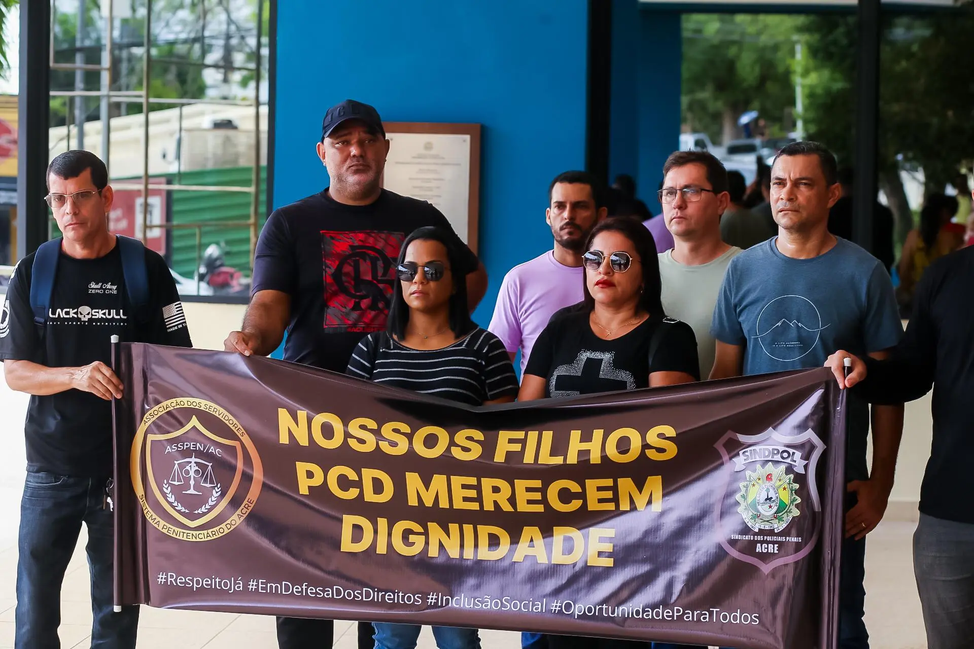 Policiais penais do Acre realizaram na manhã desta terça-feira, 18, um protesto em frente à Assembleia Legislativa do Estado do Acre (Aleac) contra um parecer da Procuradoria-Geral do Estado (PGE) que impede a concessão de banco de horas para servidores que possuem filhos ou parentes de primeiro grau com deficiência.
