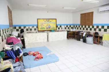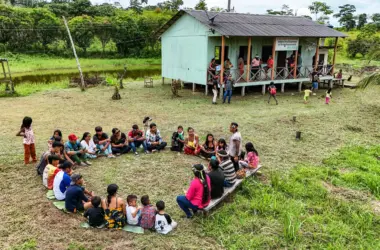 Sete famílias indígenas, totalizando 32 pessoas, foram abrigadas na Escola Madre Hildebranda da Pra, localizada no bairro Cidade Nova, em Rio Branco, após a cheia