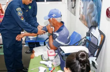 Depois de atender as comunidades de Marechal Thaumaturgo e Porto Walter, no alto Rio Juruá, o Navio Hospitalar Dr. Montenegro, está ancorado na comunidade Foz