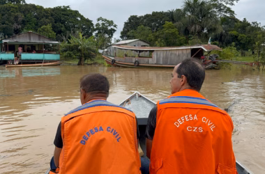 O rio Juruá atingiu 13,12 metros neste sábado, 8, em Cruzeiro do Sul, alagando quintais de onze bairros e três comunidades rurais. As equipes da