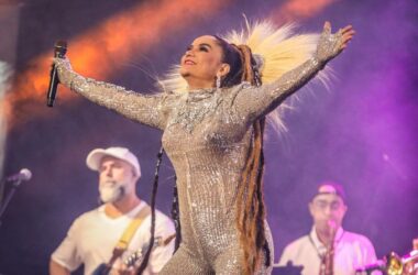 “Vamo arrebentar a boca do balão?”. Assim explanou a renomada cantora Gilmelândia, ícone do axé, ao chegar à Praça da Revolução, onde fará o show
