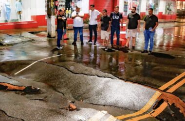 Vários pontos de Cruzeiro do Sul foram afetados pelas fortes chuvas desta terça-feira,4, e houve afundamento de ruas, colapso de bueiros, queda de árvores e