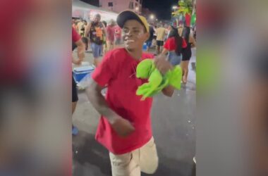 Neste Carnaval em Cruzeiro do Sul um pipoqueiro se dividiu entre o comércio e a diversão. Ele aproveitou a música para dançar na Praça Orleir