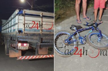 Um acidente de trânsito entre uma bicicleta e um caminhão deixou o pequeno A.G., de 7 anos, gravemente ferido no início da noite desta segunda-feira